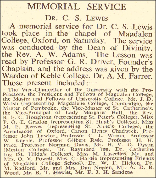 C S Lewis Memorial Service
