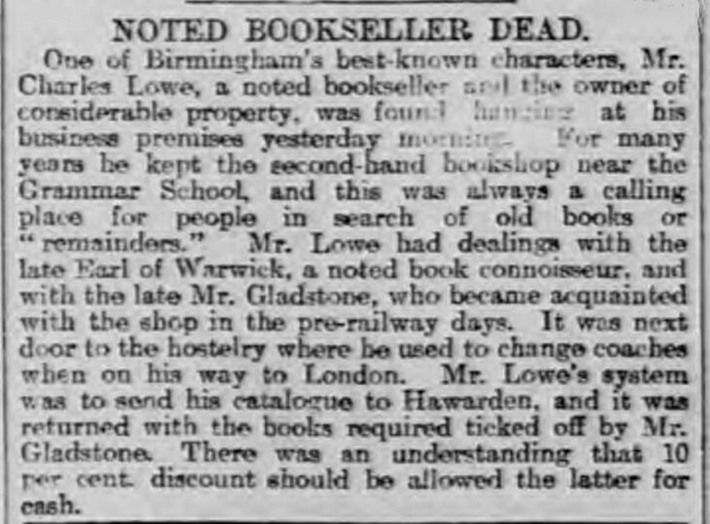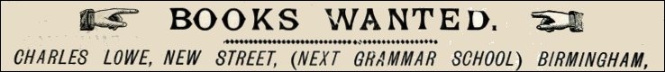 As I’ve told my wife so many times I just can’t help buying books and now I’ve discovered why. It’s in the genes as both my Great Great Great Grandfather and Great Great Uncle (both named Charles Lowe) ran ‘The Great Book Mart’ in New Street Birmingham from around 1855 to 1903.