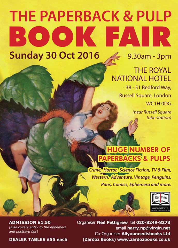 I hope this blog appears as I’m actually still in London after the Paperback and Pulp Book Fair yesterday and have scheduled it to publish today. I’ll report back on the fair next week.