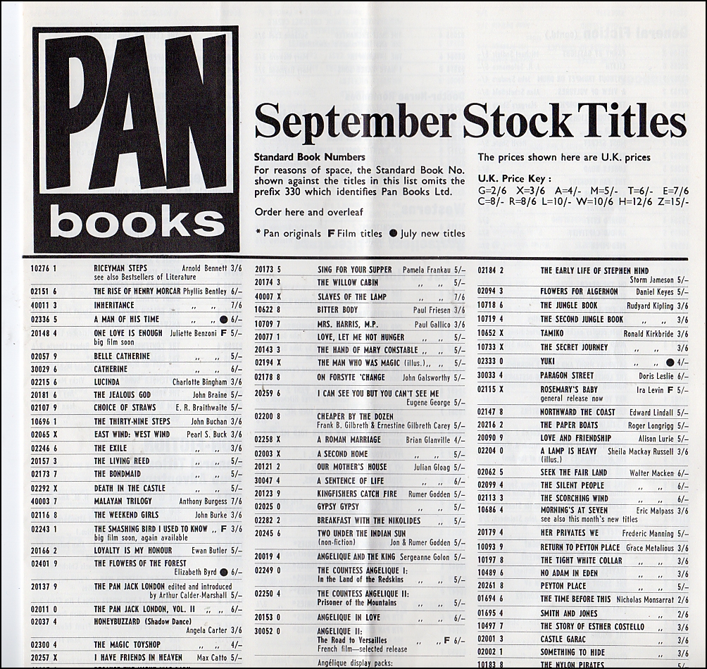 X692 published by PAN in 1967 was ‘The Sterile Cuckoo’ by John Nichols made into a film in 1970. In the US the film was still called ‘The Sterile Cuckoo’ but in the UK in was renamed ‘Pookie’ after the main character Pookie Adams. PAN republished it as ‘Pookie’ as a film tie-in with Liza Minnelli as Pookie on the cover.