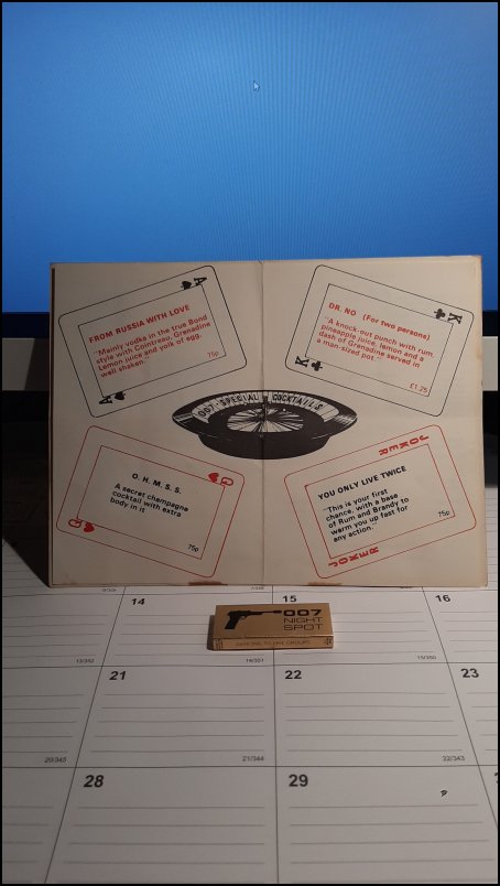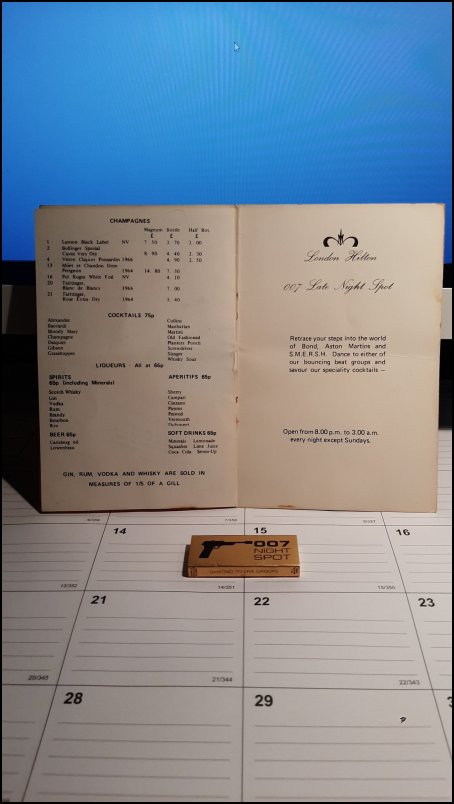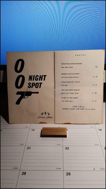 I had an email from Bazeer at Pizgloria.com asking if I had spotted the above on eBay. I will admit I am a bit behind in my searches so I hadn’t noticed it but we both agreed our pockets weren’t deep enough for this display advert. Somebody’s were though as it went for the asking price of £260. I also noticed Doug Redenius selling the below on Facebook. By the time I got around to asking what he might want for it, it had already been sold for $150. If it had still be available that one might have had me rattling the piggy bank. The ‘007 Night Spot’ at the London Hilton Hotel was a James Bond themed bar that open in 1968 and closed in the late 1970’s and the menu’s were made from genuine PAN book covers.