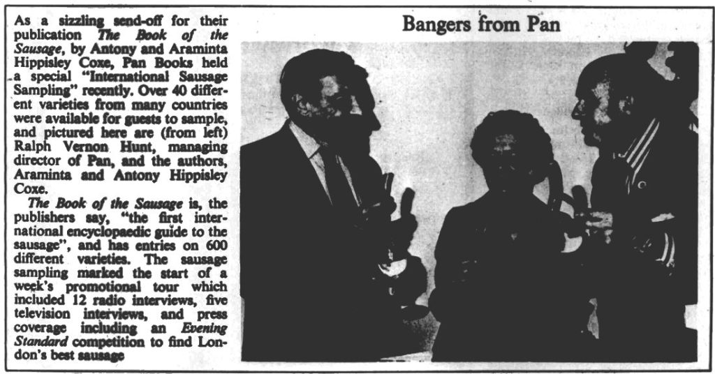 PAN always did have an eclectic catalogue of titles and one I particularly like is ‘The Book of the Sausage’ MD Ralph Vernon Hunt was at the book launch and he is well known for portraying James Bond on the directors covers, the spy who was not adverse to a bit of hide the sausage himself I’m led to believe.